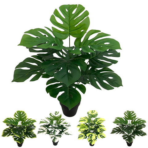 タートルバックツリーモンステラは植物を残し、屋外の家の装飾のためのプラスチック盆栽、造花が付いている内部の植木鉢